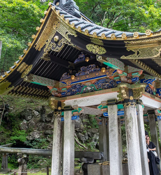 ToggleIl complesso, che consta di una dozzina di santuari shintoisti e buddhisti immersi in un bosco, risale ai primi decenni del 1600 ed è collegato alla morte di Tokugawa Ieyasu che scelse tale sito per costruirvi il mausoleo in suo onore; mausoleo che fu poi ampliato ed ulteriormente decorato dal nipote dello stesso Tokugawa Ieyasu.