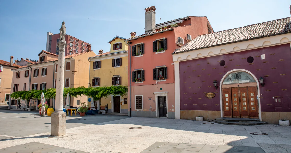Il centro storico di Capodistria è costituito da Piazza Tito, circondata da eleganti edifici in tipico stile veneziano tutti risalenti al XV secolo.