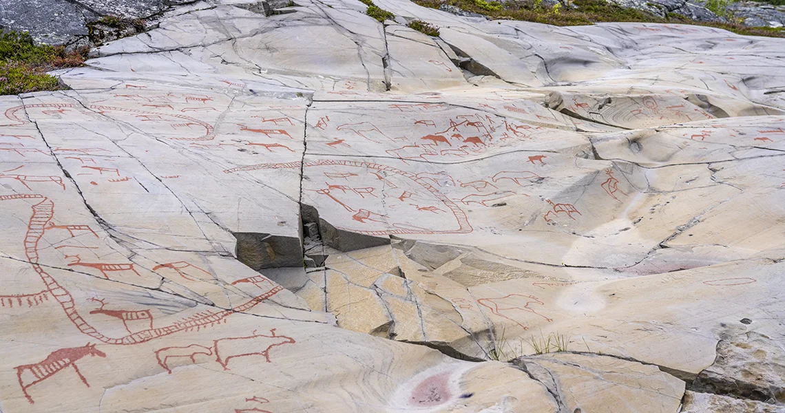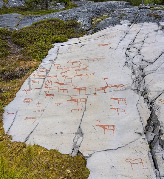 Si tratta delle incisioni rupestri protette a Hjemmeluft, ai margini occidentali della città. Un insediamento preistorico dove si possono ammirare circa 6000 antiche incisioni rupestri risalenti all’ultima Età della Pietra, più nello specifico, nell’arco temporale compreso tra 6000 e 2000 anni fa. Questo sito costituisce la testimonianza dei primi uomini cacciatori-raccoglitori scoperto fino ad oggi nell’estremo Nord.