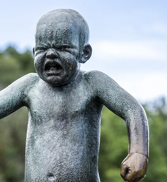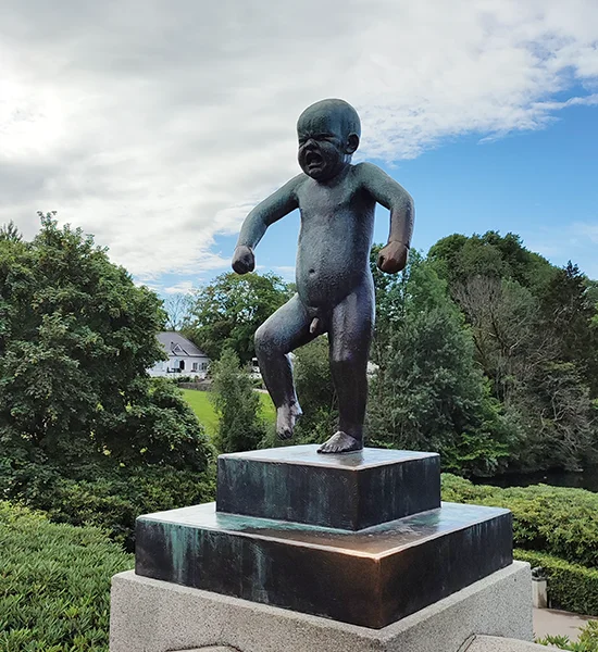 Tra queste statue, la più famosa è Sinnataggen, il bambino arrabbiato. Rappresentato imbronciato, piangente e che pesta i piedi, è divenuto uno dei simboli più importanti del parco e della stessa città di Oslo. Nonostante la sua fama, si tratta anche di una delle figure più controverse del parco. Per questo, più volte è stata vittima di atti vandalici.